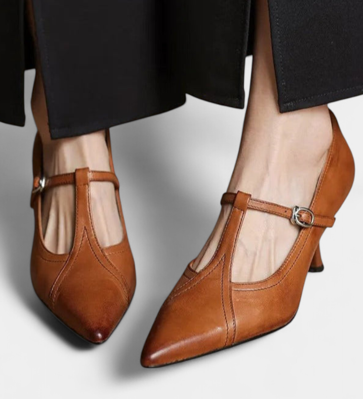 Elegantní T-Bar podpatky Zulema s hladkým povrchem