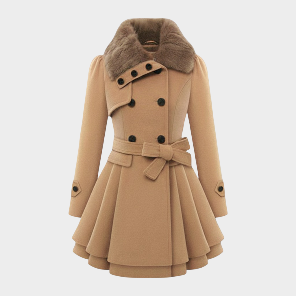 Emma - Elegantní kabát s umělým kožešinovým límcem