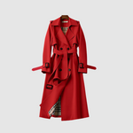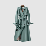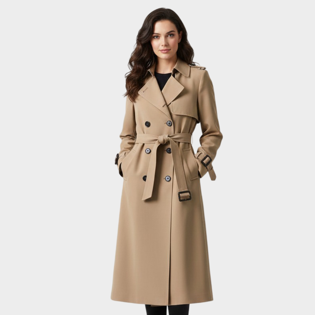 Tento trenčkot je symbolem nadčasové elegance a praktičnosti. Díky dlouhému střihu a dvouřadému zapínání působí sofistikovaně a dokonale plní jak formální, tak i ležérní outfit. Pásek v pase umožňuje zvýraznit siluetu a podtrhnout ženský styl.