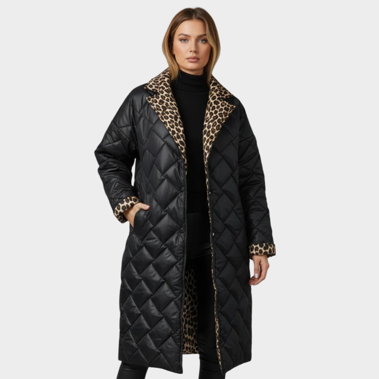 Ofira – Obojstranný prošívaný kabát s podšívkou s leopardím vzorem