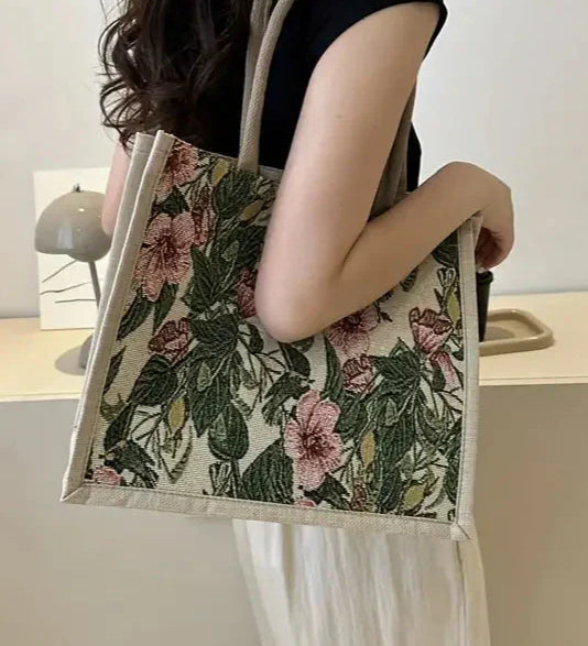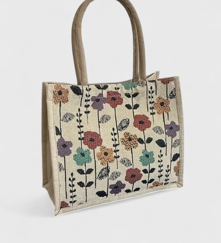 Taška Taila z Jutového Plátna s Květinovým Vzorem a Ekologickým Designem