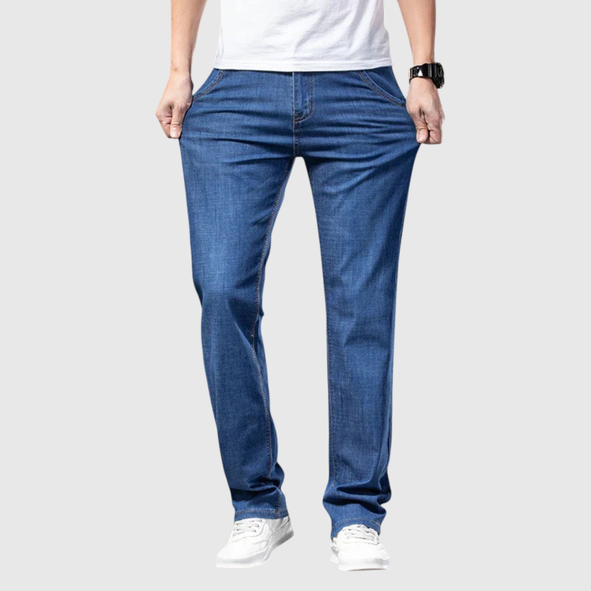 Džíny Casual Straight Denim byly navrženy pro muže, kteří si cení jednoduchého a klasického vzhledu. Vyrobeny z prvotřídního denimu, nabízejí strukturovaný, ale pohodlný střih, který je ideální pro každodenní nošení - ať už je nosíte formálně nebo je udržujete uvolněné.