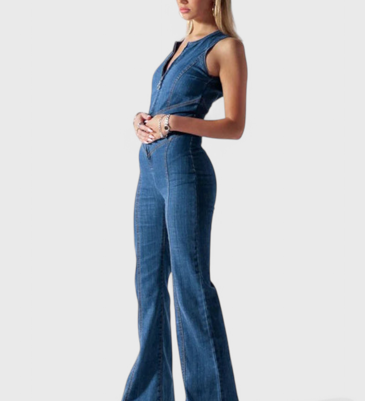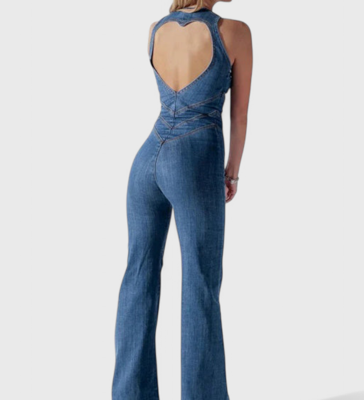 Džínový overal Maisie s výstřihem ve tvaru srdce