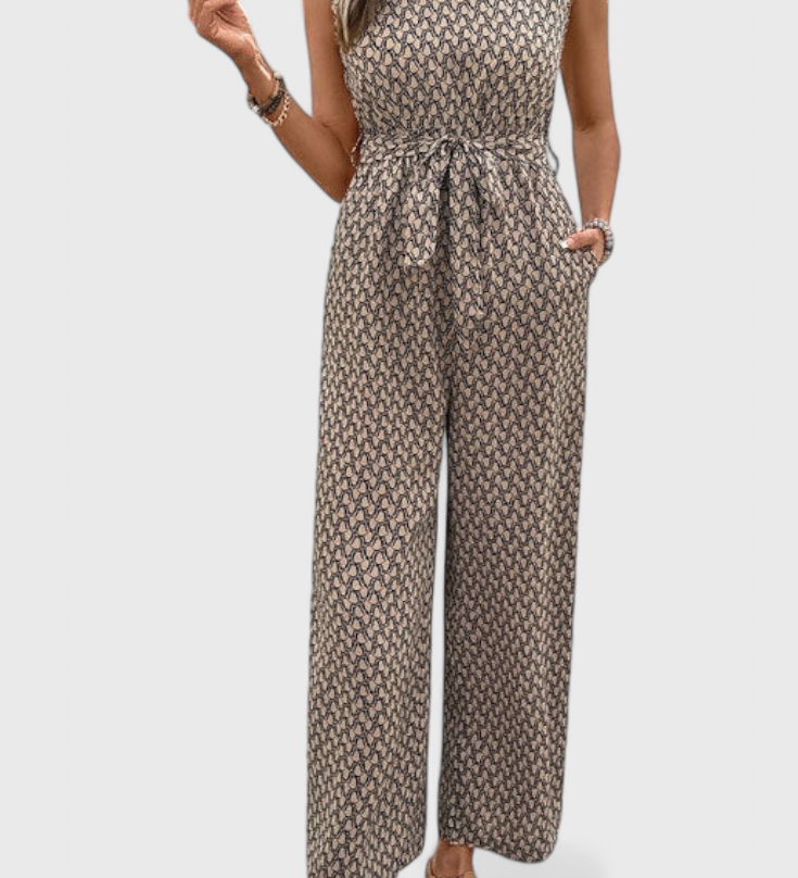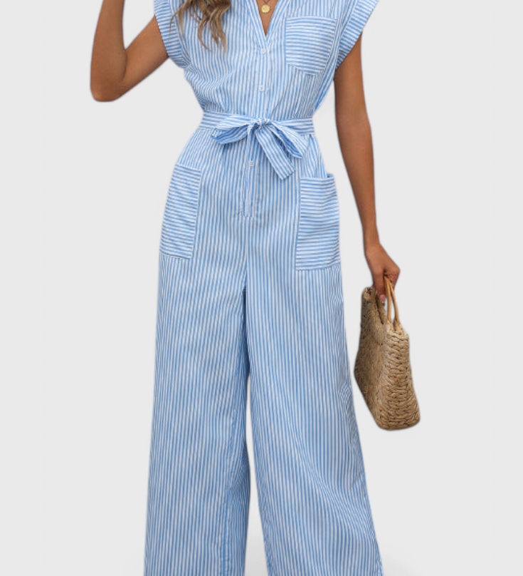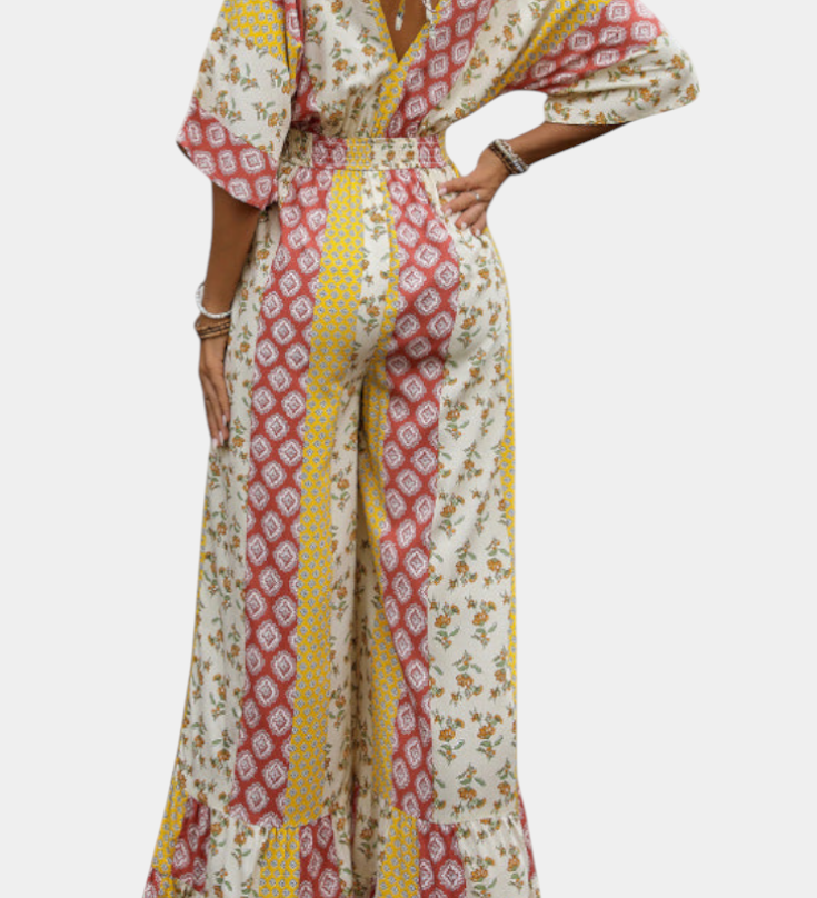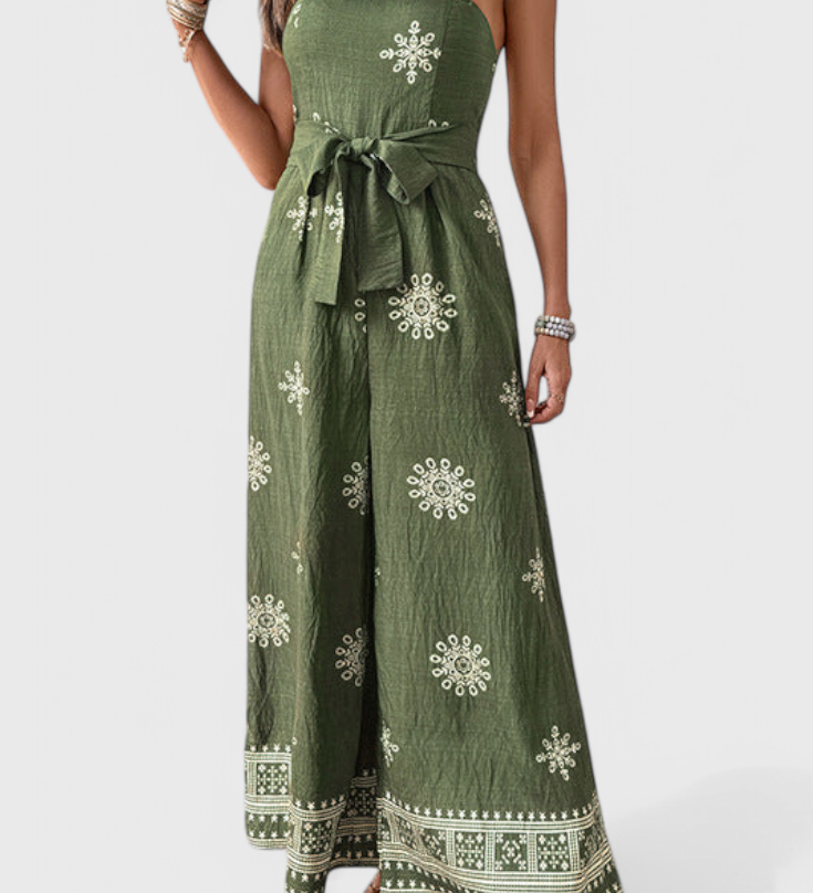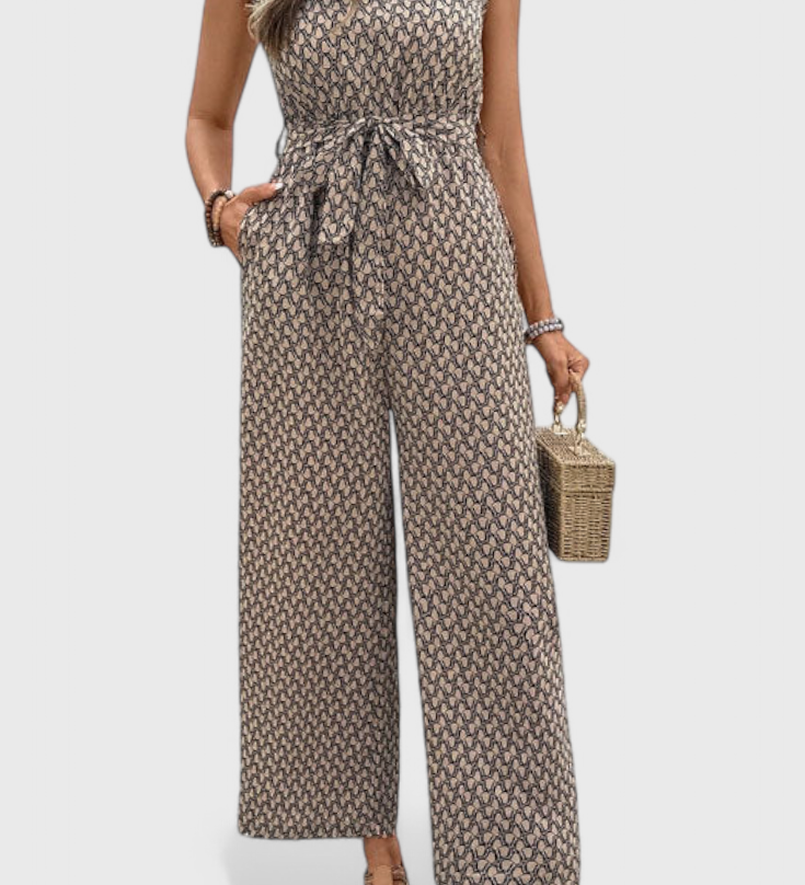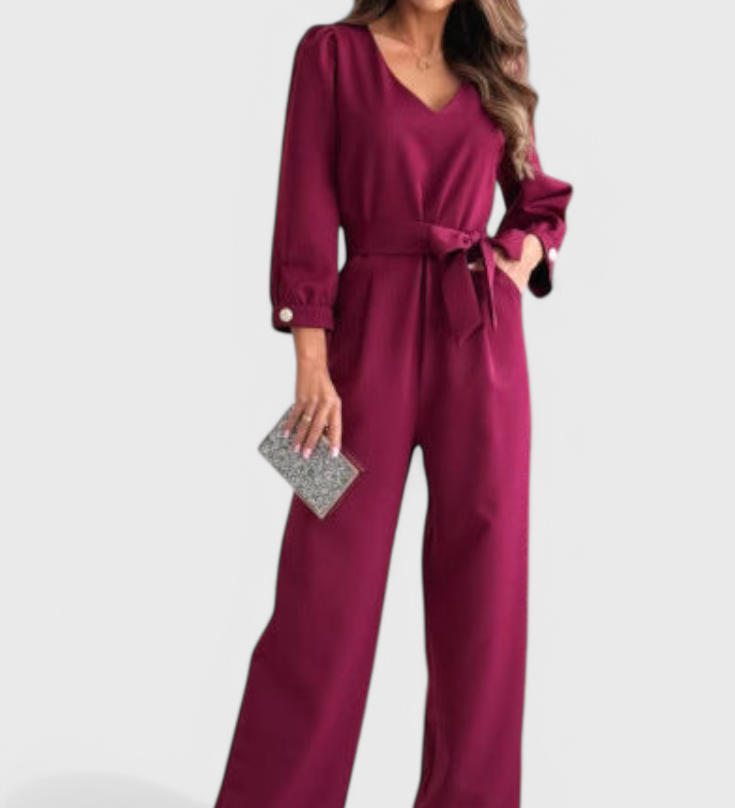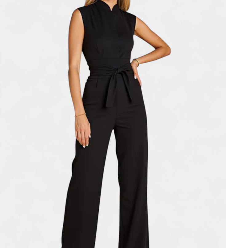 Ariane Mono s Širokými Nohavicemi a Výstřihem do V s Pasem na Mašličku