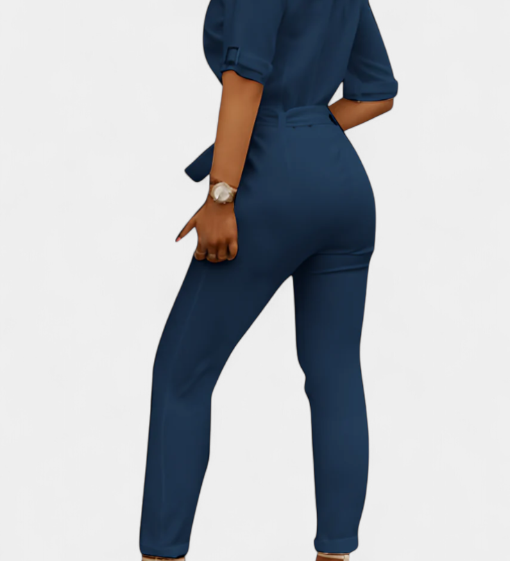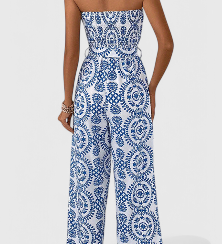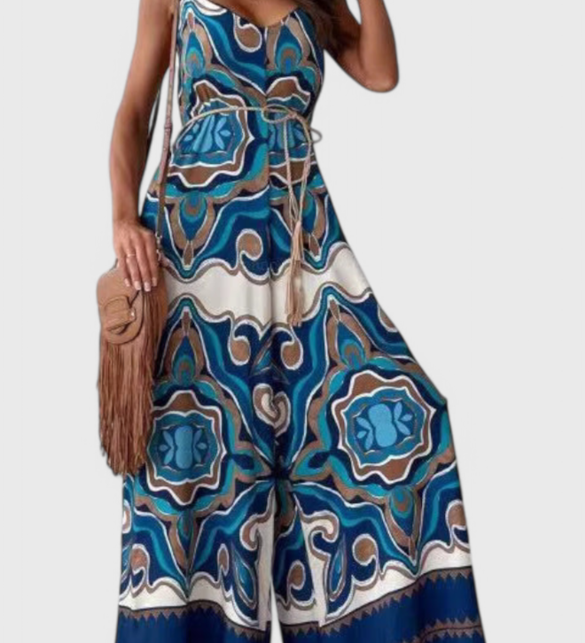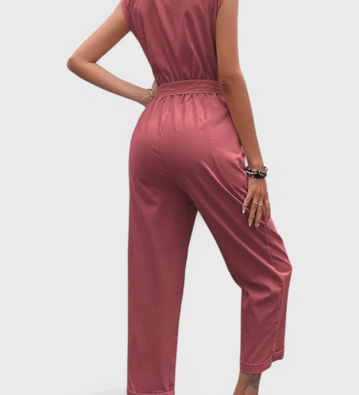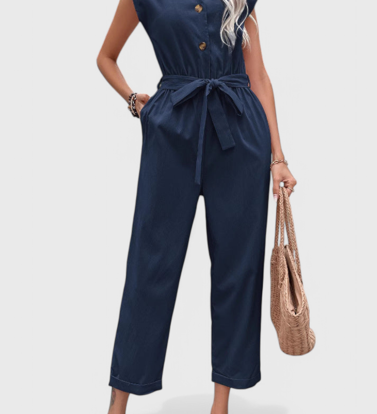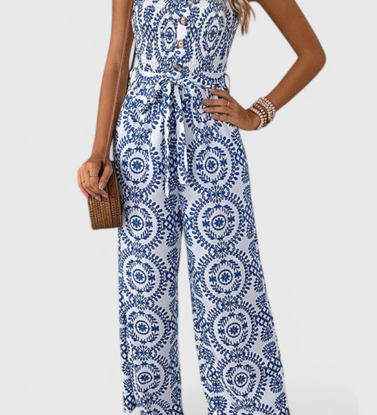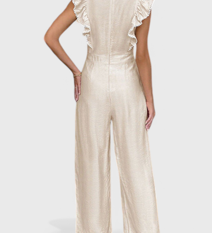 Ariane Mono s Širokými Nohavicemi a Výstřihem do V s Pasem na Mašličku