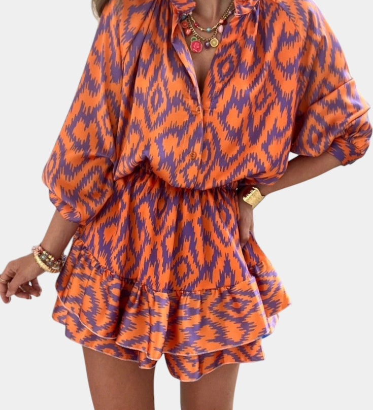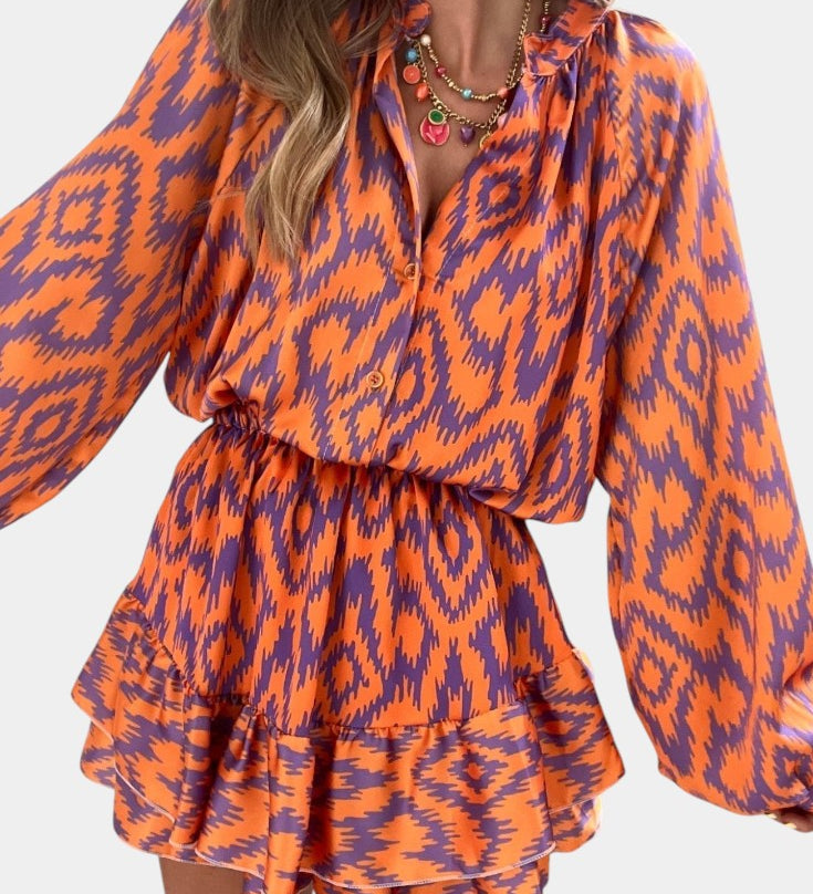 Yasmine Mono Mini s Volánky a Ikat Vzorem