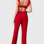 Zanechte odvážný a elegantní dojem s Chantal—bezramenným monem navrženým tak, aby definovalo a lichotilo. S vysokým pasem, širokými nohavicemi a výrazným výstřihem, tento vzhled spojuje ženské kouzlo s nádechem sebevědomí. Dokončeno jemným volánem, je to ideální volba pro večírky v teplém počasí a nezapomenutelné noci.