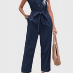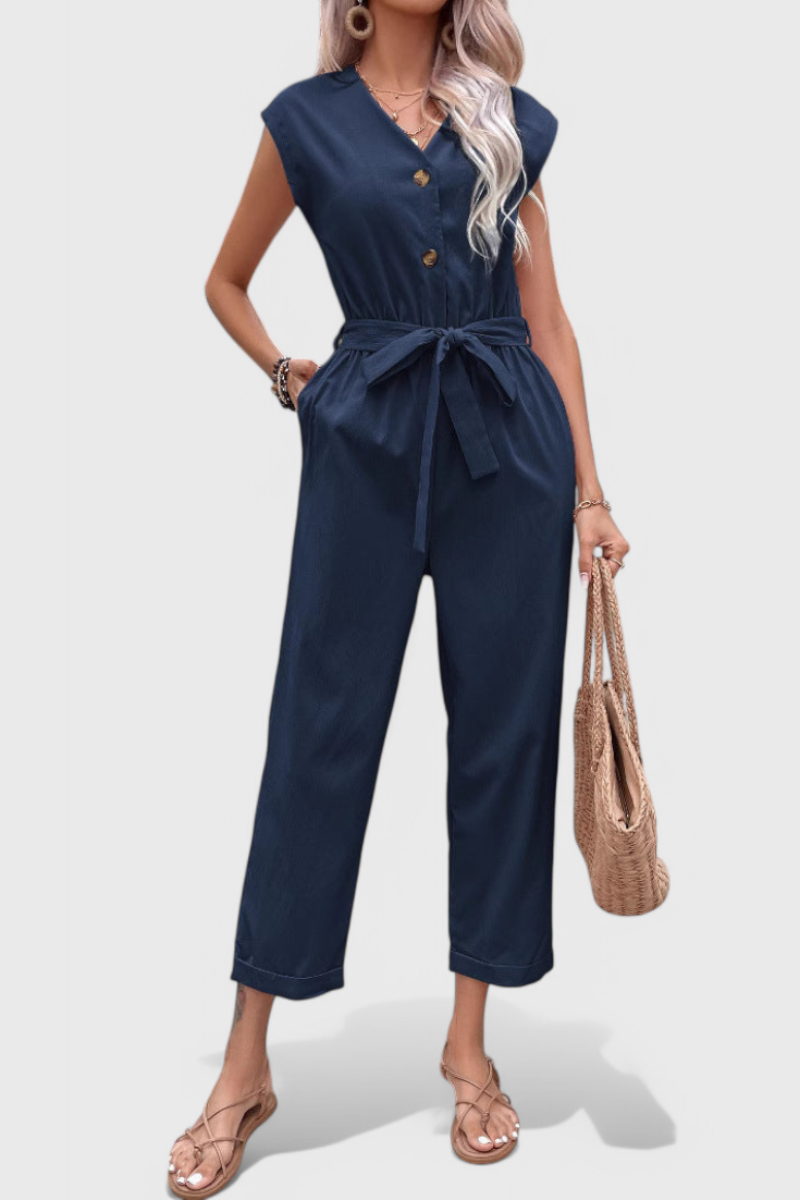 Volné a bez námahy, Marie je tvou ideální volbou na teplé dny, které vyžadují pohodlí a snadnost. S délkou až ke kotníkům, nastavitelným pasem s mašlí a jemnou tkaninou z bavlněné směsi, tento bezrukávový overal spojuje uvolněný šarm s promyšleným designem. Ideální pro procházky, brunch nebo jakýkoli plán v slunečný den.