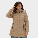 Elegantní péřová bunda Saedi je navržena tak, aby vás udržela v teple, sebevědomou a vždy upravenou — bez zbytečného objemu. Čistý, moderní design v kombinaci s lehkým zateplením poskytuje spolehlivé teplo, aniž by bunda působila těžce. Prošívaná struktura, délka ke stehnům a kapuce vytvářejí nadčasový vzhled ideální pro každodenní nošení ve městě i na cestách.