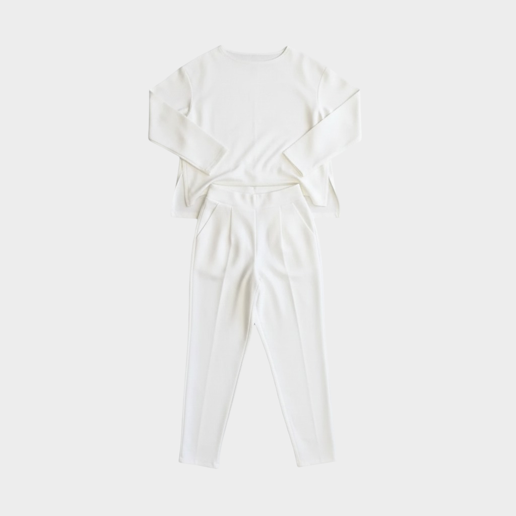 Tato souprava je ideální volbou pro pohodlí a styl v každém outfitu. Perfektně vyvažuje mezi minimalistickým chic a elegantním.