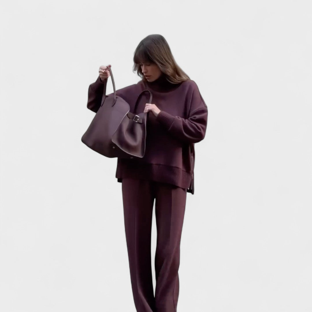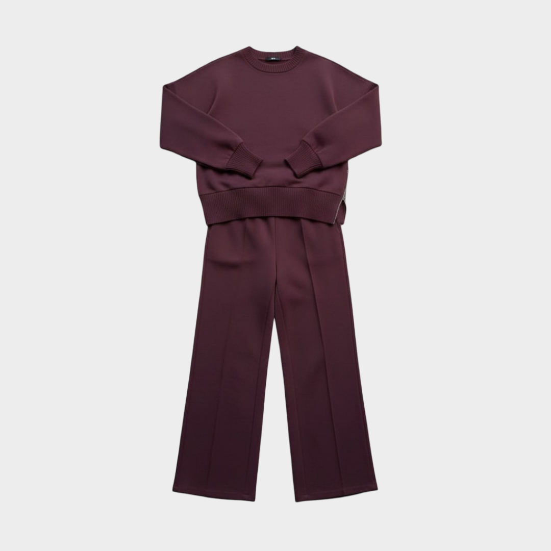 Tato souprava byla navržena pro ty, kteří si cení sofistikovaného stylu, aniž by se museli vzdát pohodlí. Díky vzdušnému střihu a jemnému materiálu se lehce přizpůsobí tělu, poskytuje volnost pohybu a dodává vytříbený vzhled.