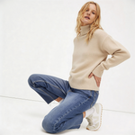 Stylový svetr s vysokým rolákem, který kombinuje moderní volný střih s maximálním pohodlím. Měkký a příjemný materiál zajišťuje hřejivost i během nejchladnějších dnů, avšak jednoduchý design umožňuje snadné kombinování s džínami, sukněmi nebo kabátem. Ideální pro každodenní nošení i volný čas.