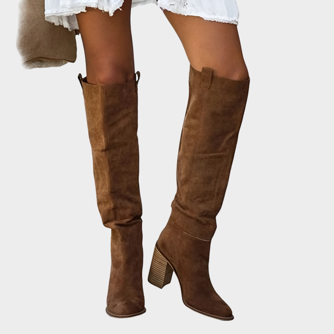 - Vysoké dámské boty ze semiše